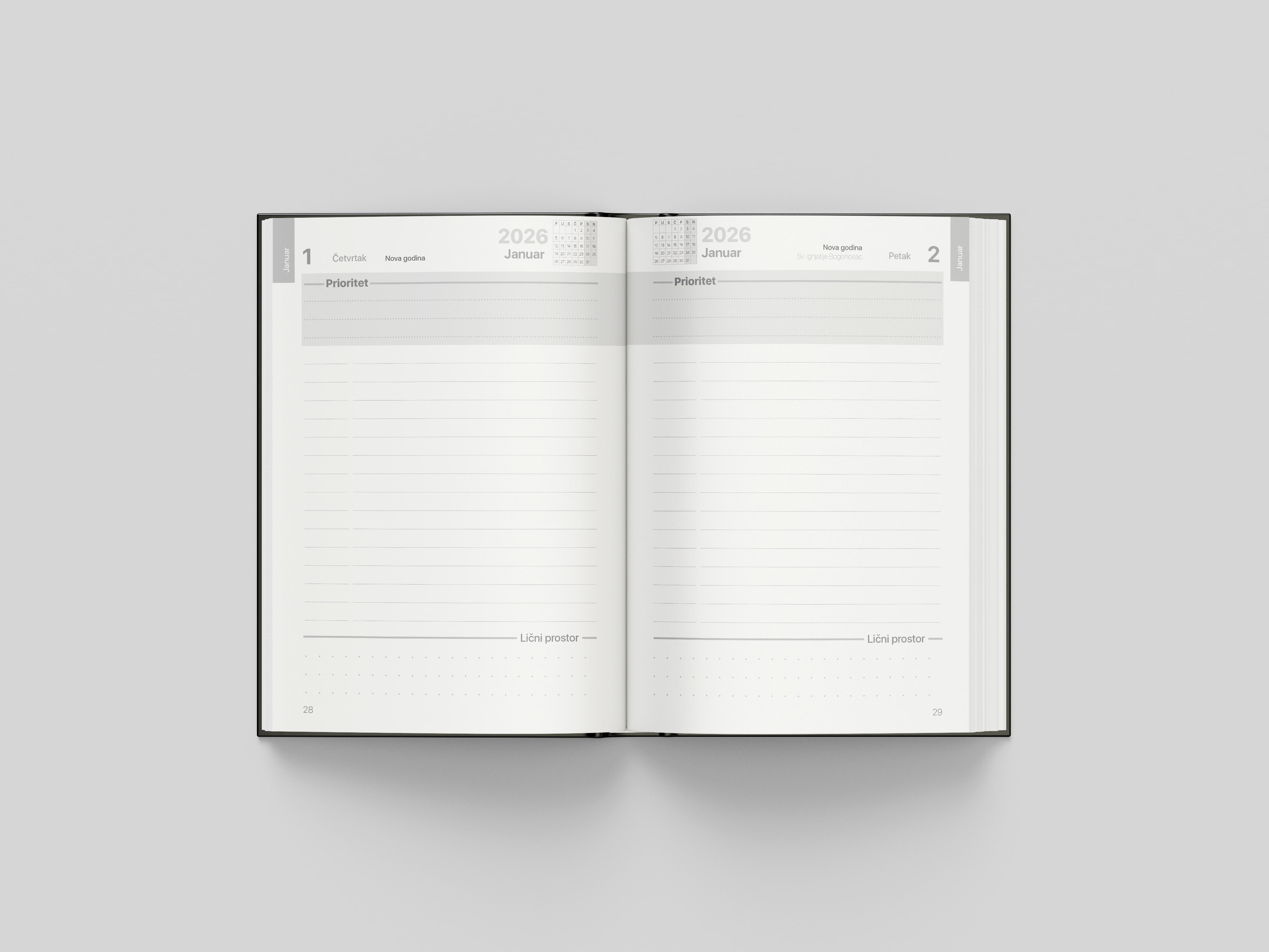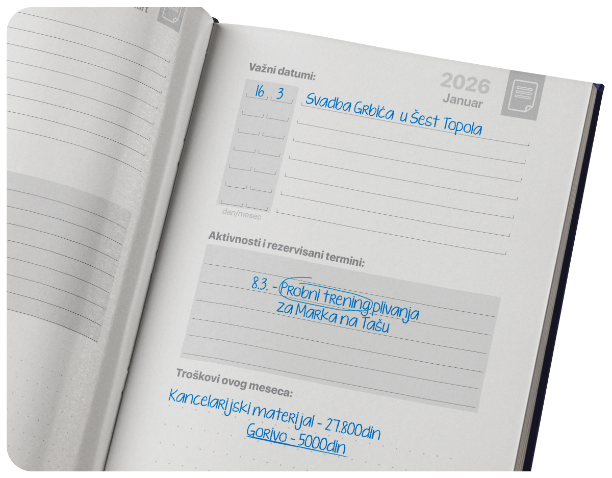 Ravnoteža između poslovnog i privatnog uz prostor za lične beleške.
