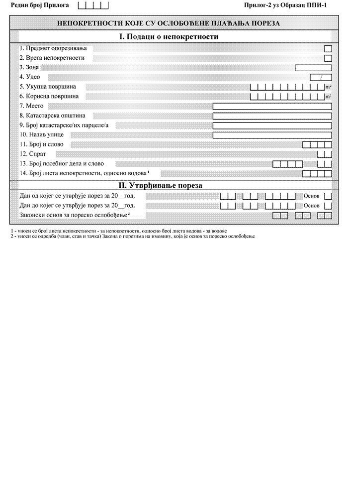 2) Obrazac PPI-2 - Poreska prijava za utvrđivanje poreza na imovinu (u daljem tekstu: Obrazac PPI-2).