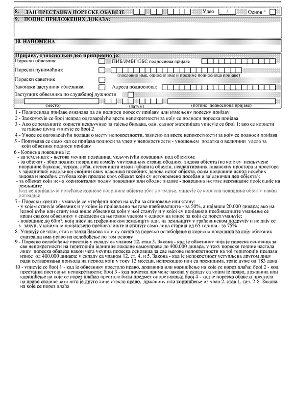 Pravilnika o obrascima poreskih prijava o utvrđenom, odnosno za utvrđivanje poreza na imovinu