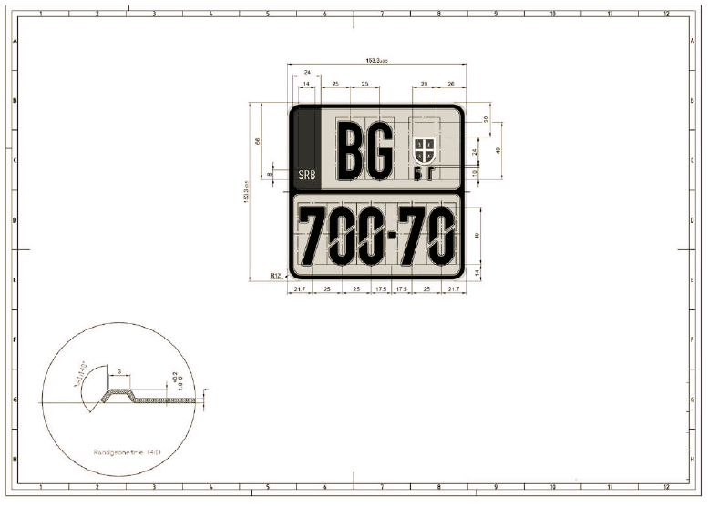 7) podatke o izdatoj saobraćajnoj dozvoli - potvrdi o privremenoj registraciji vozila - registracionoj nalepnici (registarska oznaka, datum prve registracije, datum izdavanja, registarski broj dozvole, serijski broj dozvole, kontrolni broj registracione nalepnice, važenje registracione nalepnice, važenje registracije - H;