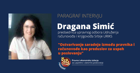 Dragana Simić - presednica upravnog odbora Udruženja računovođa i knjigovođa Srbije URIKS za PRAVO U PRIVREDI