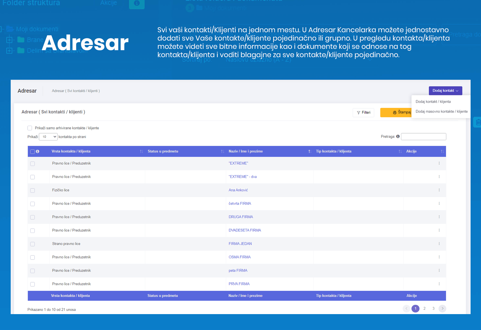 Popunite formular i obezbedićemo Vam besplatnu, neobavezujuću prezentaciju Kancelarka. Nakon popunjavanja - kontaktiraćemo Vas u kratkom roku.