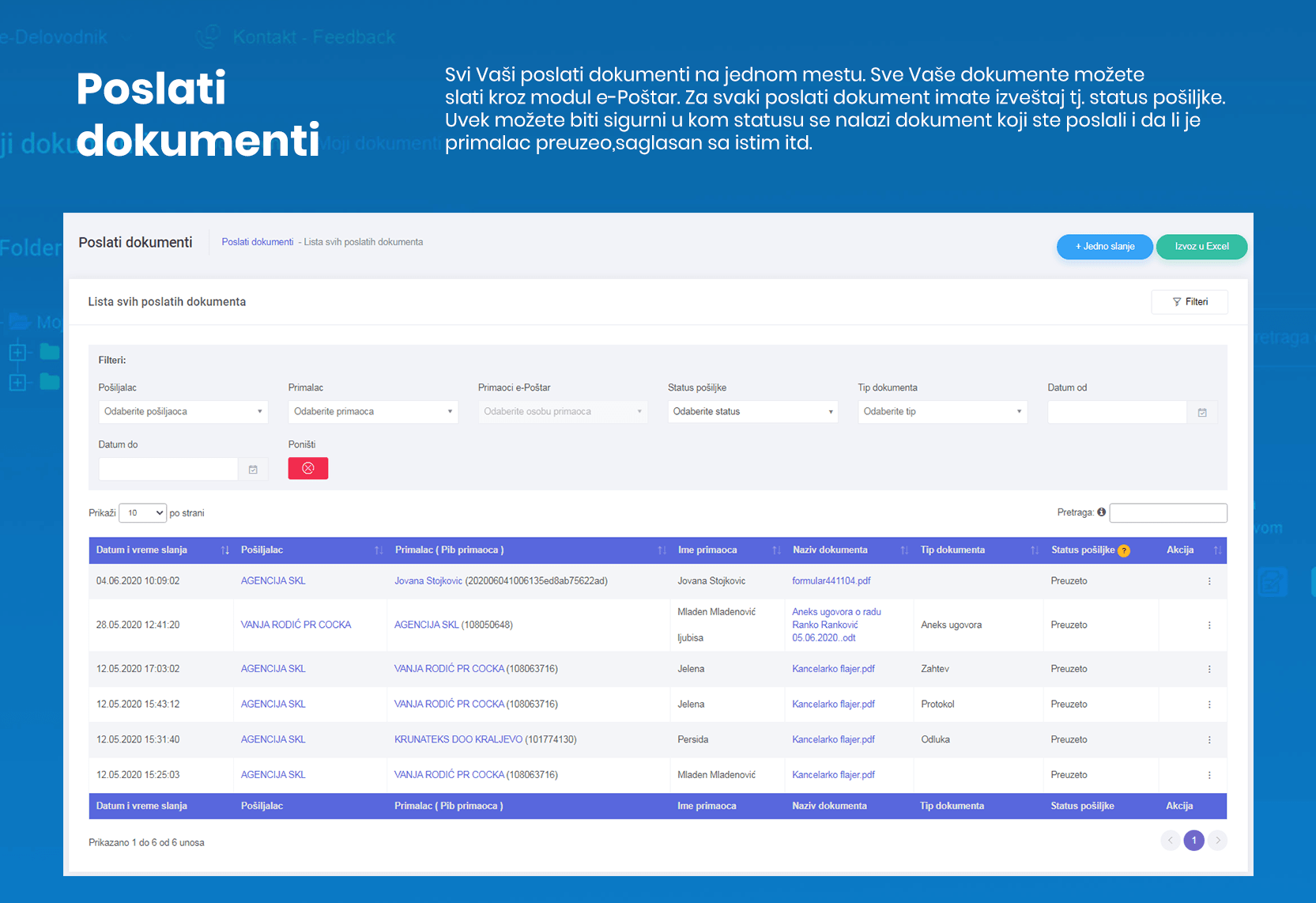 - Slanje bitnih dokumenta zaposlenima, koji nisu korisnici Kancelarka, sa statusima pošiljke