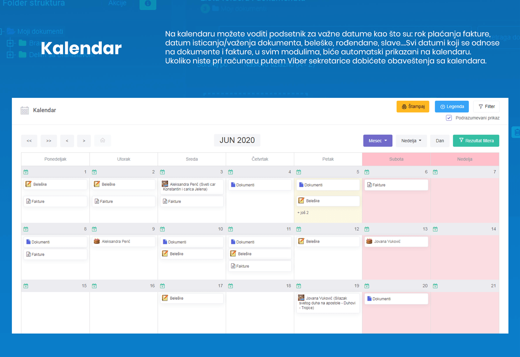 - Pregled verskih (slave, praznici) i državnih praznika, rođendana i slično na kalendaru