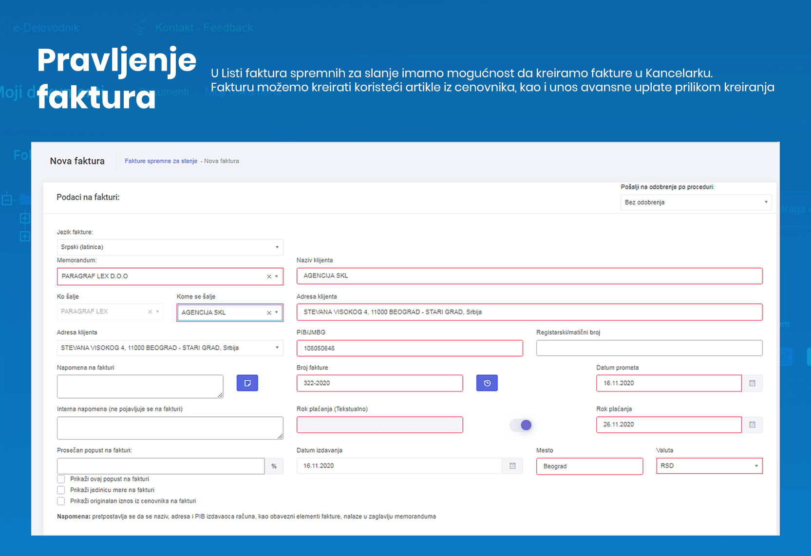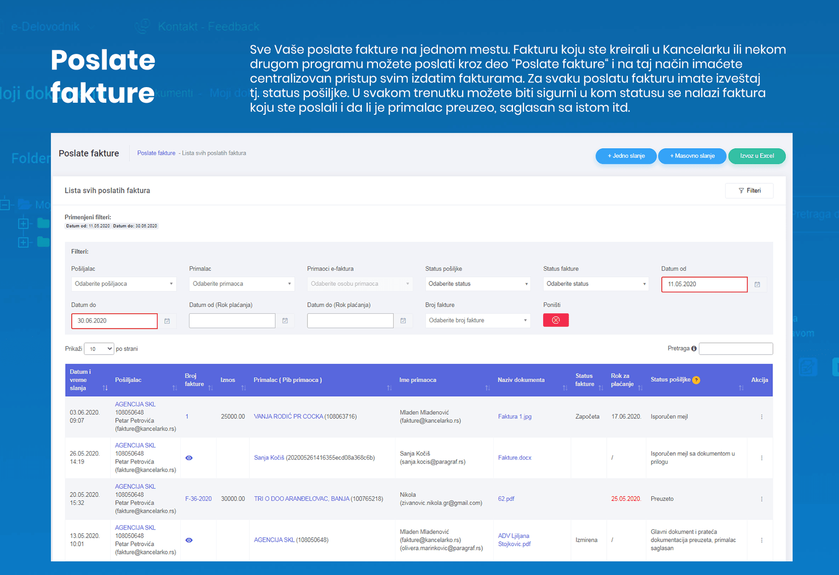 - Automatsko slanje fakture na e-mail primaoca ukoliko dokument nije preuzet u zadatom roku