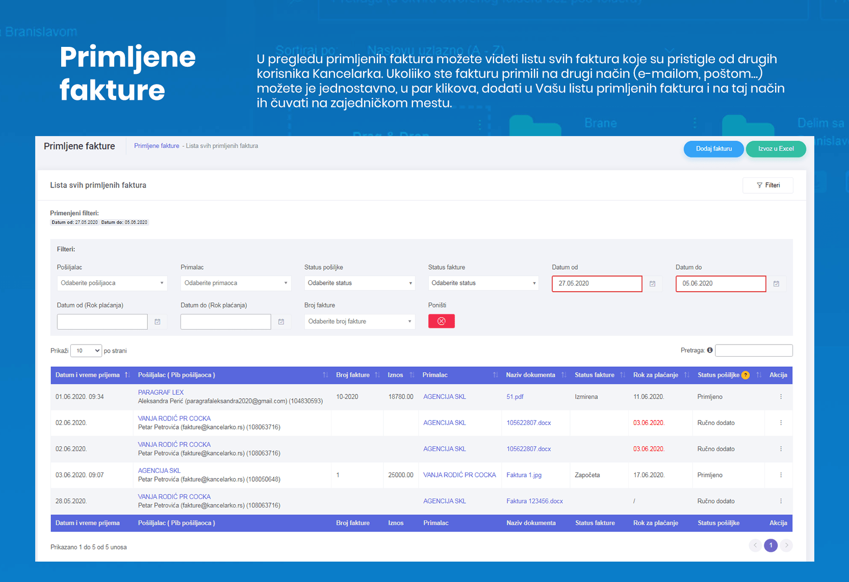 - Ušteda vremena kroz trenutnu isporuku faktura
