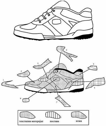 Cipela prikazana na slici je od kože i tekstilnog materijala. Kako bi odredili materijal "gornjišta" u smislu Glave 64 i eliminisali dodaci i ojačanja, u obzir se uzima sledeće: