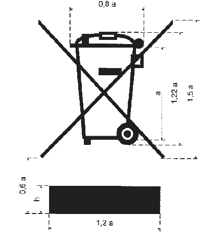 Znak za označavanje odvojenog sakupljanja otpadne opreme prikazan je na slici kao precrtan kontejner na točkovima.