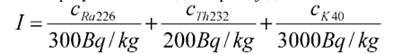 Radi sprovođenja odredbi člana 15 u građevinskim materijalima se vrši određivanje sadržaja sledećih prirodnih radionuklida: Ra-226, Th-232 (ili Ra-228) i K-40 i na osnovu dobijenih vrednosti izračunava gama indeks prema jednačini: