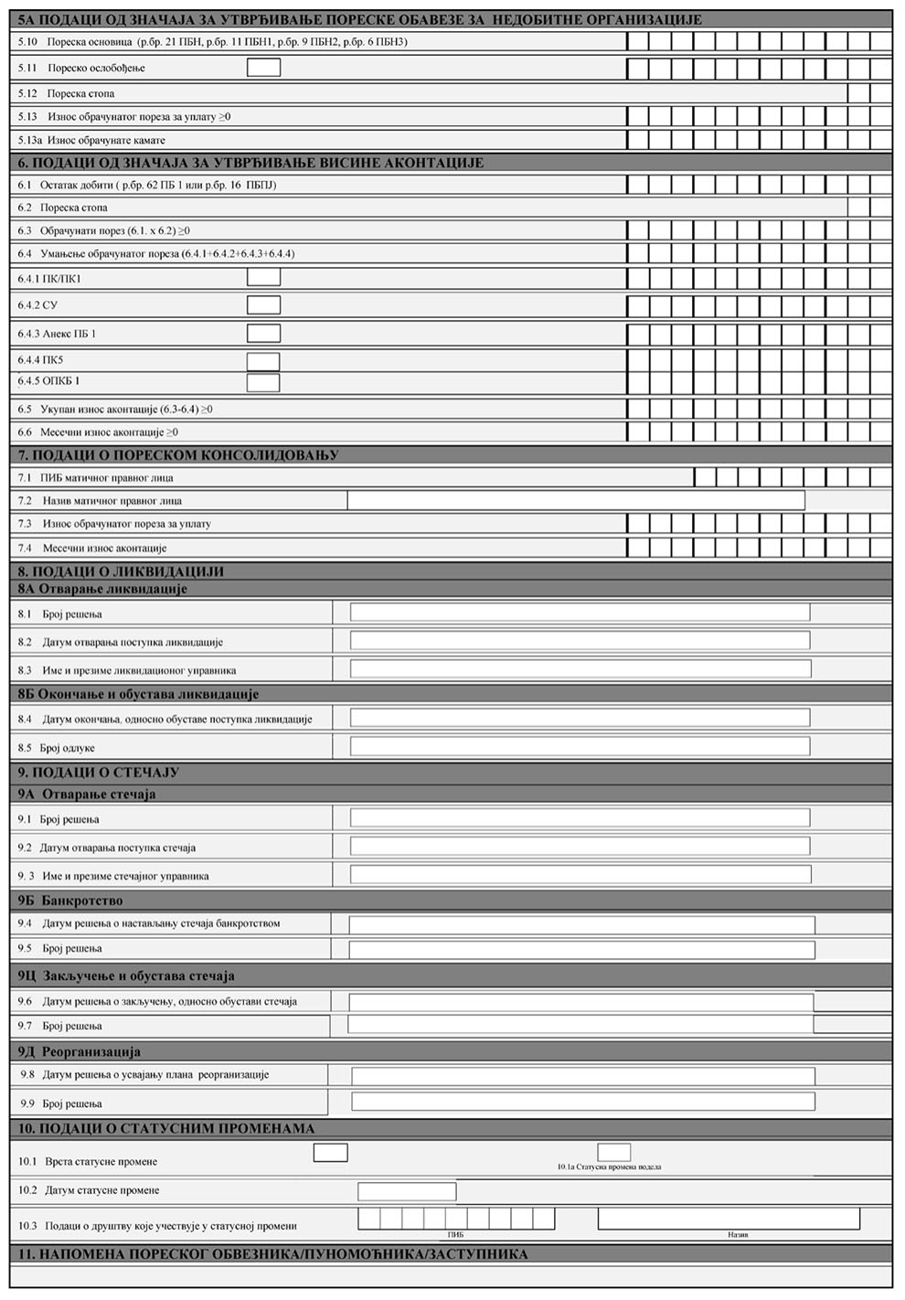 6) deo 5A Podaci od značaja za utvrđivanje poreske obaveze za nedobitne organizacije;