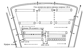 objekti za okupljanja bez fiksiranih sedišta koncentrisani prostor (samo stolice sa nefiksiranim sedištima) prostor za stajanje nekoncentrisani prostor (stolovi i stolice) |