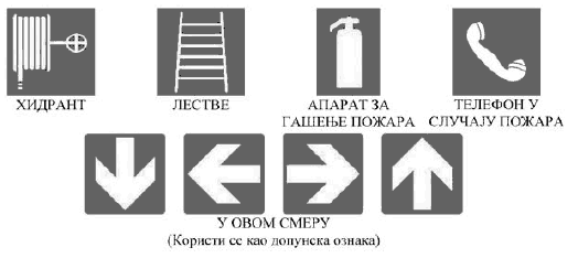2.1.2. Oznake na tablama i/ili bezbednosne boje moraju da se koriste za trajno označavanje lokacije i identifikaciju opreme za gašenje požara.