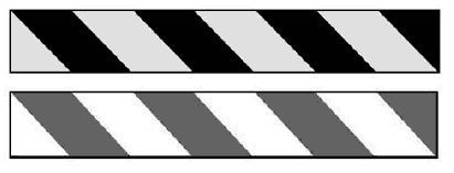 1.3. Žuto - crne ili crveno - bele pruge moraju da budu pod uglom od 45° i približno iste širine.