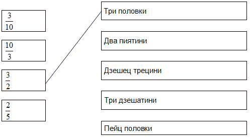 Котре зоз понукнутих числох єднаке числу 0,3? Заокруж букву опрез точного одвита. a) 10/3 б) 3/10 в) 1/3 г) 3/1 |