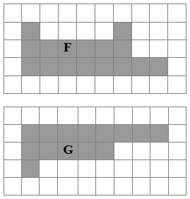 Дата фиґура F. Офарб тото цо потребне же би фиґура G була конґруентна (най ше може поклопиц) зоз фиґуру F.
