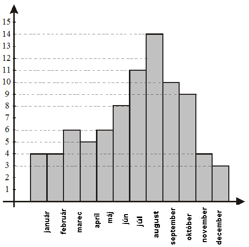 a) Najmenej slnečných dní v roku bolo v decembri. b) Najviacej slnečných dní v roku bolo v auguste. |