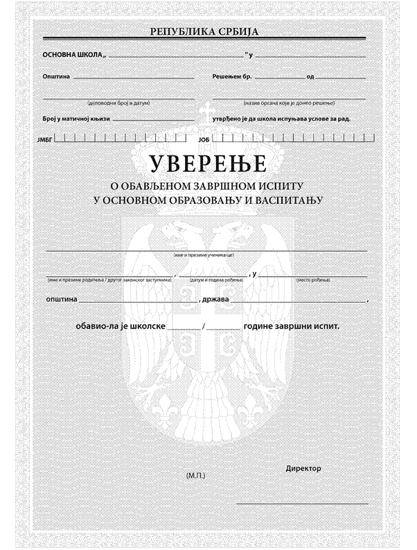 o obavljenom završnom ispitu u osnovnom obrazovanju i vaspitanju