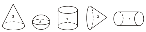 Na svaki valjak upiši broj 1, na svaki stožac broj 2, а na svaku kuglu broj 3.