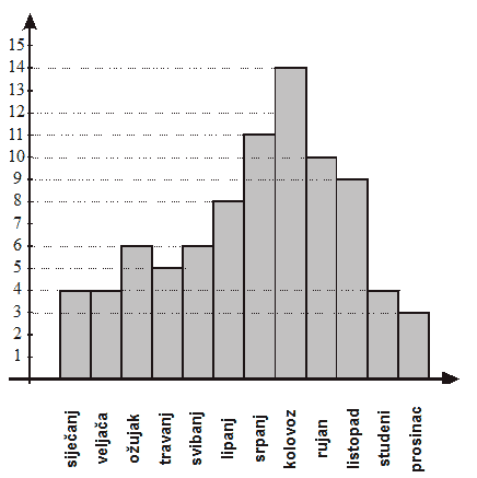 Broj sunčanih dana u godini po mjesecima zadan je dijagramom: