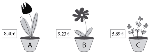 Cvjećar treba zaokružiti cijenu cvijećа iz uvoza na najbliži cijeli broj. Upiši nove cijene.
