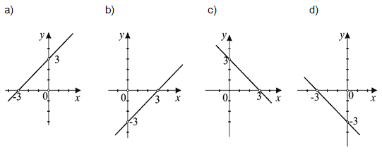Којi od grafova prikazuje graf funkcije y = −x + 3? Zaokruži slovo ispred točnog odgovora.