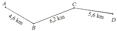Udaljenost između mjesta А i mjesta D prikazano je na sljedećoj mapi.