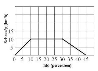 Kata 45 percig kerékpározott. Az első 10 perc után elérte a 10 km/h sebességet. Ezzel a sebességgel további 20 percig folytatta, ezután pedig fokozatosan lassított mindaddig, amíg meg nem állt. Folytasd az elkezdett módon a diagramot, amely leírja Kata kerékpározásának menetét.