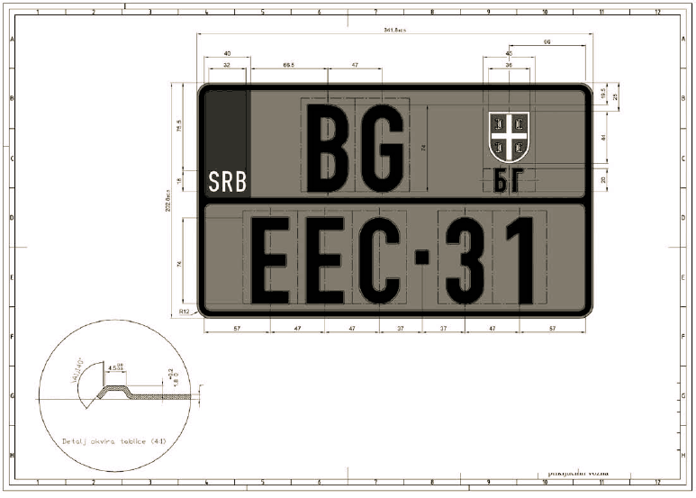 7) podatke o izdatoj saobraćajnoj dozvoli - potvrdi o privremenoj registraciji vozila - registracionoj nalepnici (registarska oznaka, datum prve registracije, datum izdavanja, registarski broj dozvole, serijski broj dozvole, kontrolni broj registracione nalepnice, važenje registracione nalepnice, važenje registracije - H;