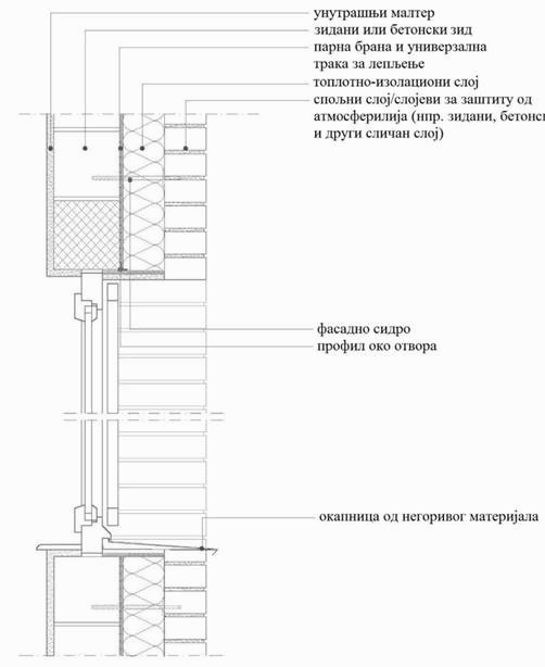 3) zidani (opeka, blokovi i sl.) ili betonski (liveni na licu mesta ili prefabrikovani) zidovi sa kontaktnim toplotno-izolacionim sistemom (ETICS).